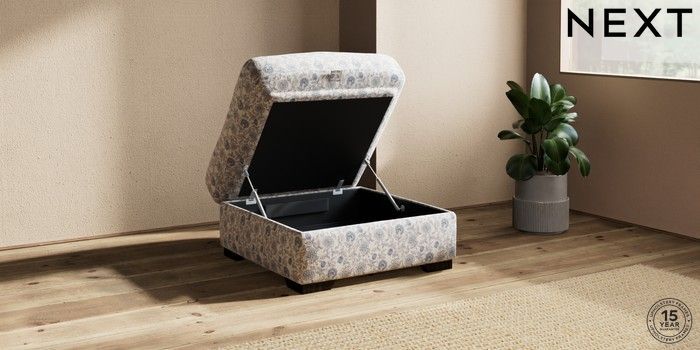 7.3.1 Buy Houghton Deep Relaxed Sit Storage Footstool Relaxed Linen Look Print Woodblock Floral Blue Square Angle - Dark from the Seasons online shop Click here to use our website with more accessibility support, for example screen readers