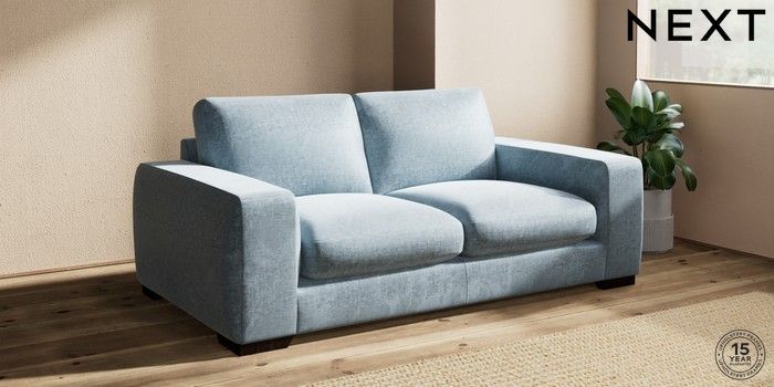7.2.10 Buy Houghton Deep Sit 3 Seater Small Sofa Plush Chenille Light Blue Large Square Angle - Dark from the Seasons online shop Click here to use our website with more accessibility support, for example screen readers