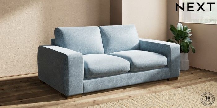 7.2.10 Buy Houghton Deep Sit 3 Seater Small Sofa Plush Chenille Light Blue Large Square Angle - Mid from the Seasons online shop Click here to use our website with more accessibility support, for example screen readers