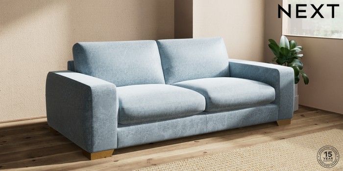 7.2.10 Buy Houghton Deep Sit 3 Seater Sofa Plush Chenille Light Blue Large Square Angle - Brushed Brass from the Seasons online shop Click here to use our website with more accessibility support, for example screen readers