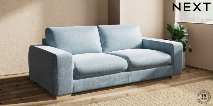 7.2.10 Buy Houghton Deep Sit 3 Seater Sofa Plush Chenille Light Blue Large Square Angle - Light from the Seasons online shop Click here to use our website with more accessibility support, for example screen readers
