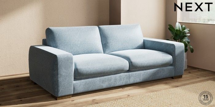 7.2.10 Buy Houghton Deep Sit 3 Seater Sofa Plush Chenille Light Blue Large Square Angle - Mid from the Seasons online shop Click here to use our website with more accessibility support, for example screen readers
