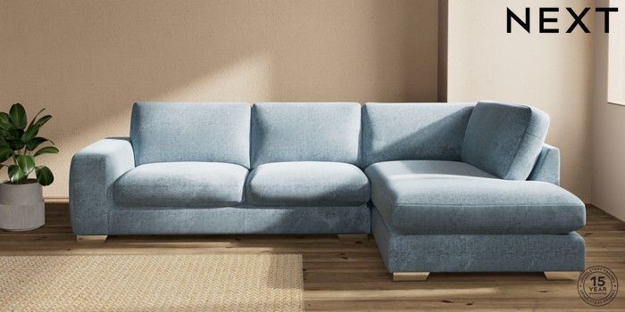 7.3.1 Buy Houghton Deep Sit Large Corner Chaise - Right Hand Plush Chenille Light Blue Large Square Angle - Chrome Metal from the Seasons online shop Click here to use our website with more accessibility support, for example screen readers