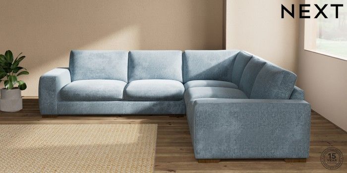 7.2.10 Buy Houghton Deep Sit Large Corner Sofa - Universal Plush Chenille Light Blue Large Square Angle - Mid from the Seasons online shop Click here to use our website with more accessibility support, for example screen readers