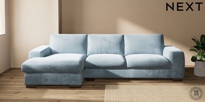 7.2.10 Buy Houghton Deep Sit Large Sofa Chaise - Left Hand Plush Chenille Light Blue Large Square Angle - Gunmetal from the Seasons online shop Click here to use our website with more accessibility support, for example screen readers