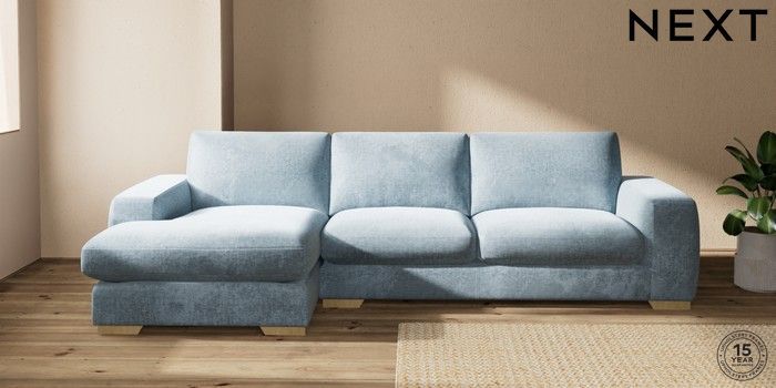 7.2.10 Buy Houghton Deep Sit Large Sofa Chaise - Left Hand Plush Chenille Light Blue Large Square Angle - Light from the Seasons online shop Click here to use our website with more accessibility support, for example screen readers