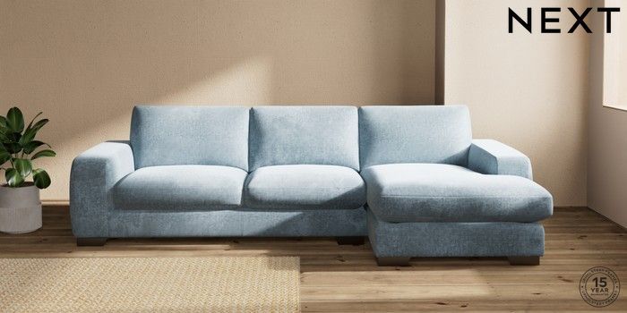 7.3.1 Buy Houghton Deep Sit Large Sofa Chaise - Right Hand Plush Chenille Light Blue Large Square Angle - Gunmetal from the Seasons online shop Click here to use our website with more accessibility support, for example screen readers