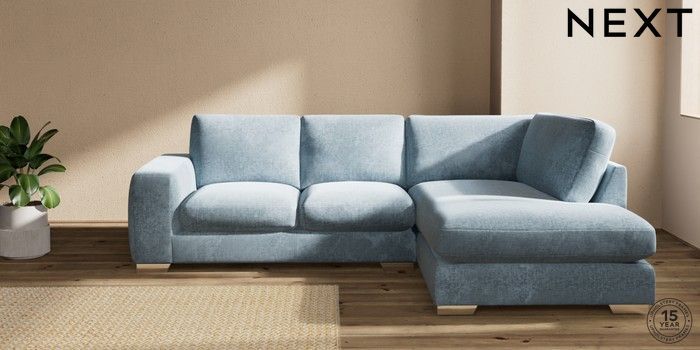7.2.10 Buy Houghton Deep Sit Medium Corner Chaise - Right Hand Plush Chenille Light Blue Large Square Angle - Chrome Metal from the Seasons online shop Click here to use our website with more accessibility support, for example screen readers