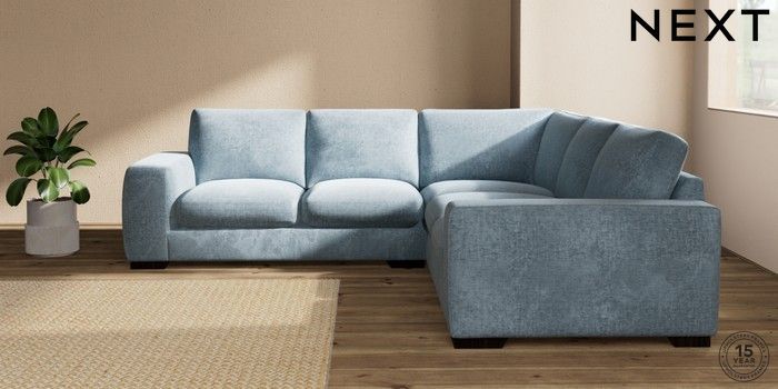 7.2.10 Buy Houghton Deep Sit Medium Corner Sofa - Universal Plush Chenille Light Blue Large Square Angle - Dark from the Seasons online shop Click here to use our website with more accessibility support, for example screen readers
