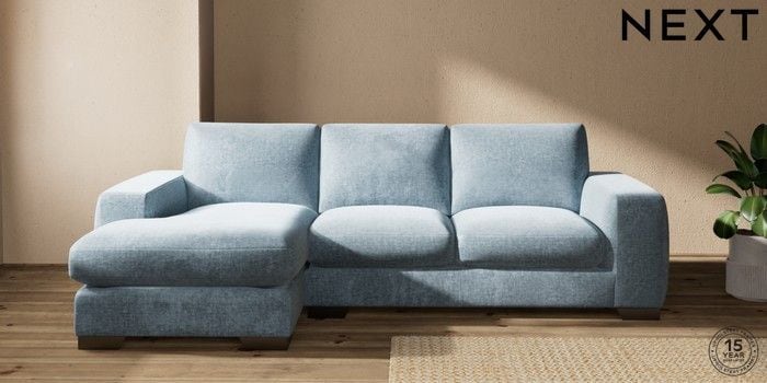 7.2.10 Buy Houghton Deep Sit Medium Sofa Chaise - Left Hand Plush Chenille Light Blue Large Square Angle - Gunmetal from the Seasons online shop Click here to use our website with more accessibility support, for example screen readers