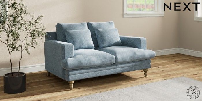 7.2.10 Buy Hutton Deep Relaxed Sit 2 Seater Sofa Plush Chenille Light Blue Country Turned - Light from the Seasons online shop Click here to use our website with more accessibility support, for example screen readers
