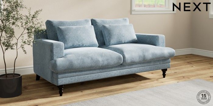 7.2.10 Buy Hutton Deep Relaxed Sit 3 Seater Small Sofa Plush Chenille Light Blue Country Turned - Dark from the Seasons online shop Click here to use our website with more accessibility support, for example screen readers
