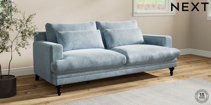 7.2.10 Buy Hutton Deep Relaxed Sit 3 Seater Sofa Plush Chenille Light Blue Country Turned - Dark from the Seasons online shop Click here to use our website with more accessibility support, for example screen readers