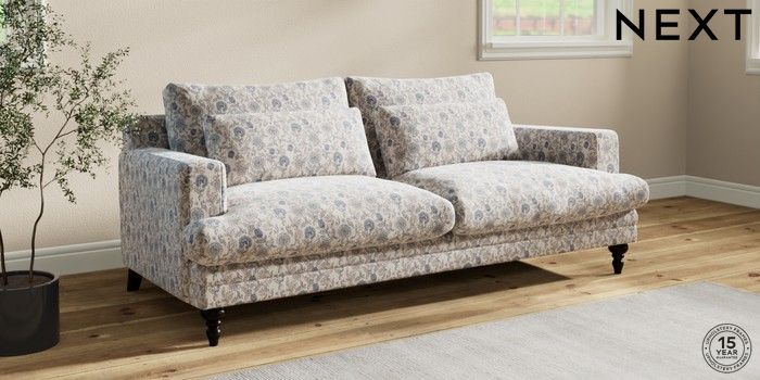 7.3.1 Buy Hutton Deep Relaxed Sit 3 Seater Sofa Relaxed Linen Look Print Woodblock Floral Blue Country Turned - Dark from the Seasons online shop