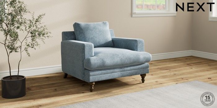 7.2.10 Buy Hutton Deep Relaxed Sit Armchair Plush Chenille Light Blue Country Turned - Mid from the Seasons online shop Click here to use our website with more accessibility support, for example screen readers