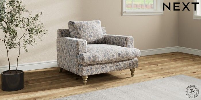 7.3.1 Buy Hutton Deep Relaxed Sit Armchair Relaxed Linen Look Print Woodblock Floral Blue Country Turned - Light from the Seasons online shop