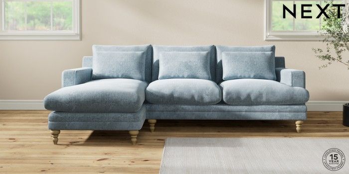 7.2.10 Buy Hutton Deep Relaxed Sit Medium Sofa Chaise - Left Hand Plush Chenille Light Blue Country Turned - Light from the Seasons online shop Click here to use our website with more accessibility support, for example screen readers