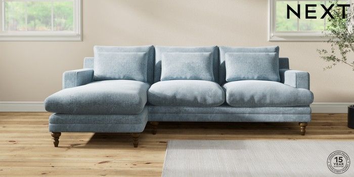 7.2.10 Buy Hutton Deep Relaxed Sit Medium Sofa Chaise - Left Hand Plush Chenille Light Blue Country Turned - Mid from the Seasons online shop Click here to use our website with more accessibility support, for example screen readers