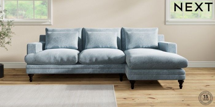 7.2.10 Buy Hutton Deep Relaxed Sit Medium Sofa Chaise - Right Hand Plush Chenille Light Blue Country Turned - Dark from the Seasons online shop Click here to use our website with more accessibility support, for example screen readers