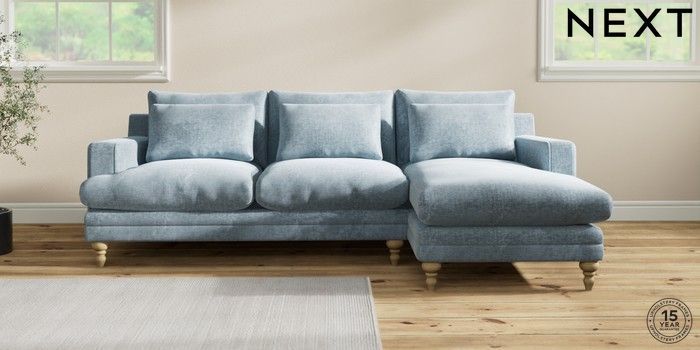 7.2.10 Buy Hutton Deep Relaxed Sit Medium Sofa Chaise - Right Hand Plush Chenille Light Blue Country Turned - Light from the Seasons online shop Click here to use our website with more accessibility support, for example screen readers