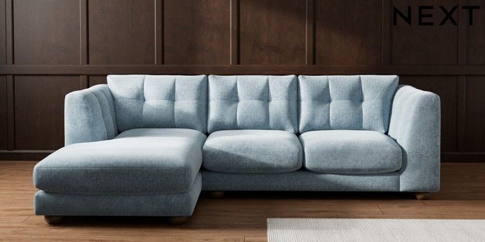 7.2.10 Buy Jasmine Medium Sofa Chaise - Left Hand Plush Chenille Light Blue Large Bun - Mid from the Seasons online shop Click here to use our website with more accessibility support, for example screen readers
