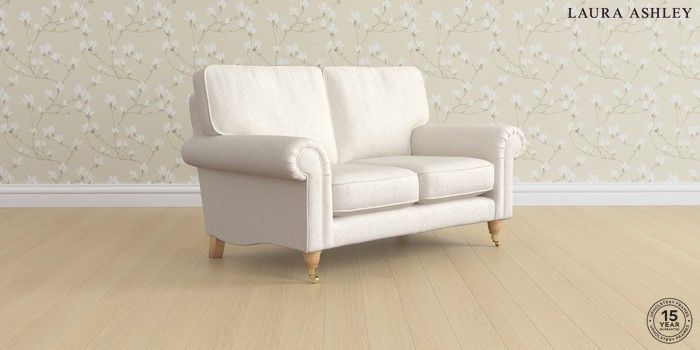 7.3.1 Buy Kingston by Laura Ashley 2 Seater Small Sofa Anneliese Oyster Natural Low Brass Castor - Light Oak from the Seasons online shop Click here to use our website with more accessibility support, for example screen readers