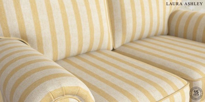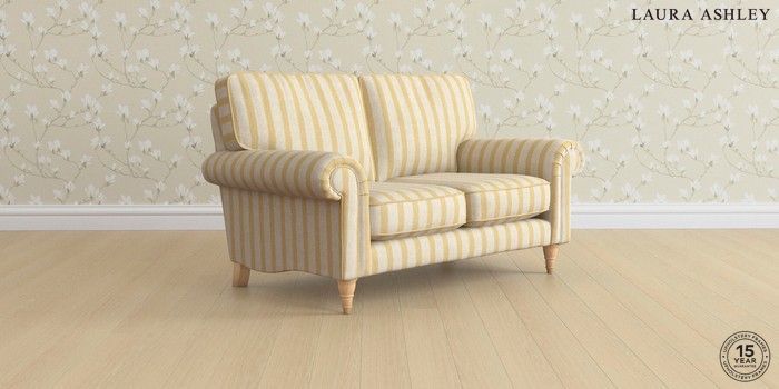 7.3.1 Buy Kingston by Laura Ashley 2 Seater Small Sofa Kinsham Stripe Ochre Yellow Low Turned - Light Oak from the Seasons online shop Click here to use our website with more accessibility support, for example screen readers