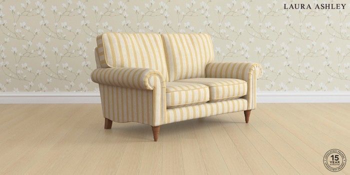 7.3.1 Buy Kingston by Laura Ashley 2 Seater Small Sofa Kinsham Stripe Ochre Yellow Low Turned - Teak from the Seasons online shop Click here to use our website with more accessibility support, for example screen readers