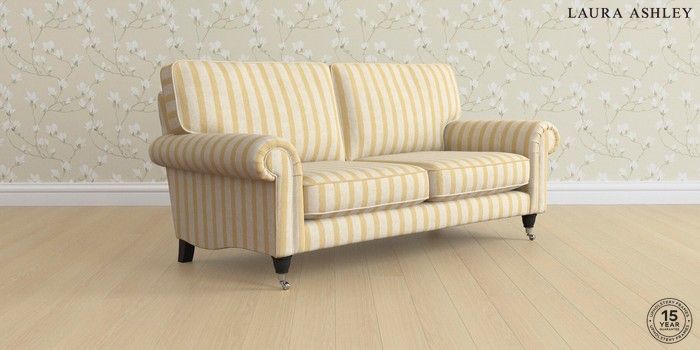 7.3.1 Buy Kingston by Laura Ashley 3 Seater Small Sofa Kinsham Stripe Ochre Yellow Low Chrome Castor - Black from the Seasons online shop Click here to use our website with more accessibility support, for example screen readers
