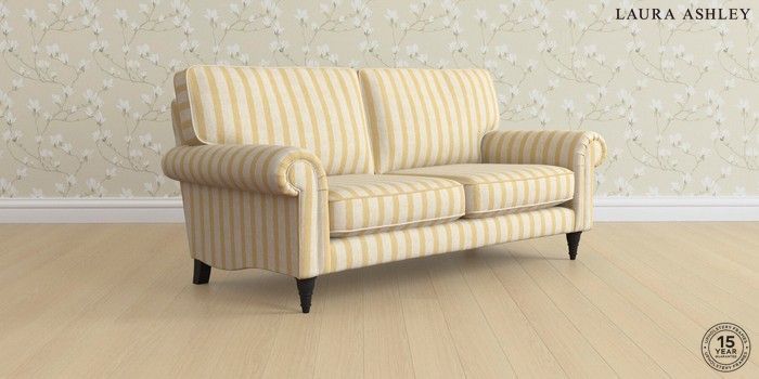 7.3.1 Buy Kingston by Laura Ashley 3 Seater Small Sofa Kinsham Stripe Ochre Yellow Low Turned - Black from the Seasons online shop Click here to use our website with more accessibility support, for example screen readers