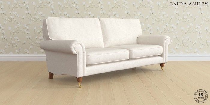 7.3.1 Buy Kingston by Laura Ashley 3 Seater Sofa Anneliese Oyster Natural Low Brass Castor - Teak from the Seasons online shop