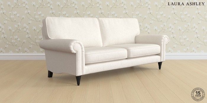 7.3.1 Buy Kingston by Laura Ashley 3 Seater Sofa Anneliese Oyster Natural Low Turned - Black from the Seasons online shop Click here to use our website with more accessibility support, for example screen readers