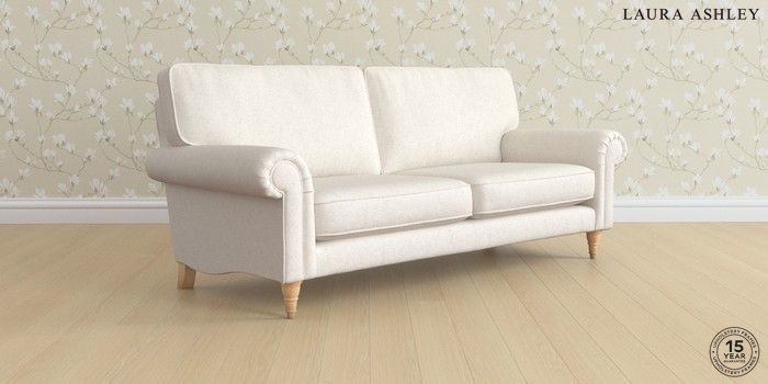 7.3.1 Buy Kingston by Laura Ashley 3 Seater Sofa Anneliese Oyster Natural Low Turned - Light Oak from the Seasons online shop Click here to use our website with more accessibility support, for example screen readers