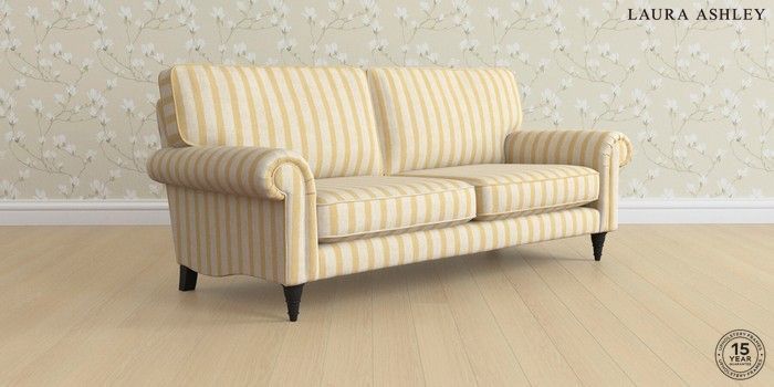 7.3.1 Buy Kingston by Laura Ashley 3 Seater Sofa Kinsham Stripe Ochre Yellow Low Turned - Black from the Seasons online shop Click here to use our website with more accessibility support, for example screen readers
