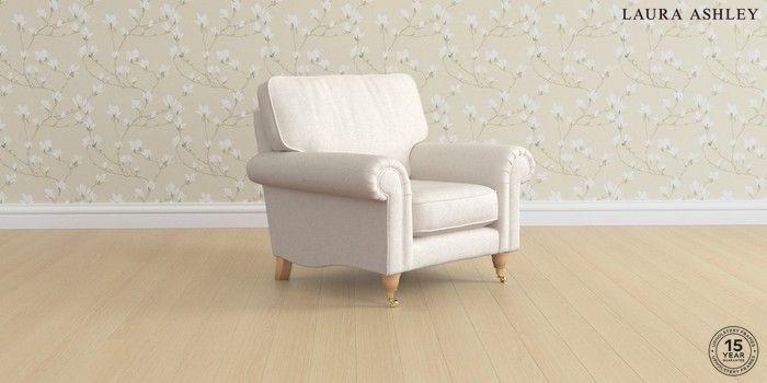 7.3.1 Buy Kingston by Laura Ashley Armchair Anneliese Oyster Natural Low Brass Castor - Light Oak from the Seasons online shop