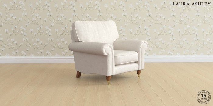 7.3.1 Buy Kingston by Laura Ashley Armchair Anneliese Oyster Natural Low Brass Castor - Teak from the Seasons online shop