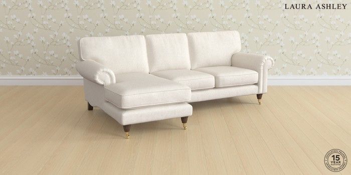 7.3.1 Buy Kingston by Laura Ashley Medium Sofa Chaise - Left Hand Anneliese Oyster Natural Low Brass Castor - Chestnut from the Seasons online shop Click here to use our website with more accessibility support, for example screen readers