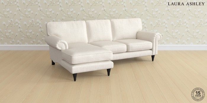 7.3.1 Buy Kingston by Laura Ashley Medium Sofa Chaise - Left Hand Anneliese Oyster Natural Low Turned - Black from the Seasons online shop Click here to use our website with more accessibility support, for example screen readers