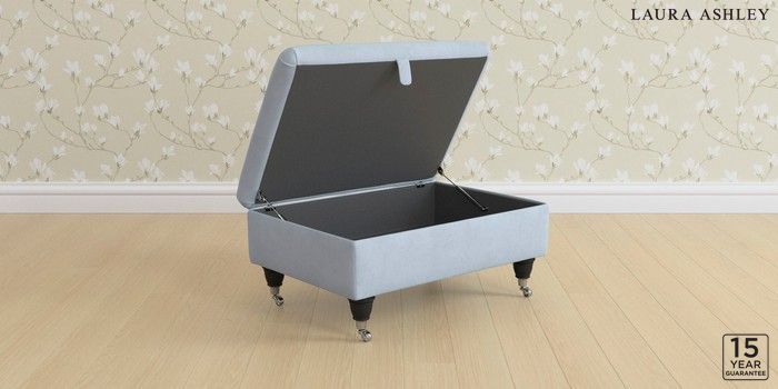 7.3.1 Buy Kingston by Laura Ashley Storage Footstool Ailsworth Newport Blue Low Chrome Castor - Black from the Seasons online shop Click here to use our website with more accessibility support, for example screen readers