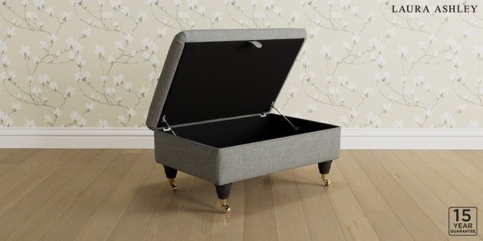 7.3.1 Buy Kingston by Laura Ashley Storage Footstool Anneliese Steel Grey Low Brass Castor - Black from the Seasons online shop Click here to use our website with more accessibility support, for example screen readers