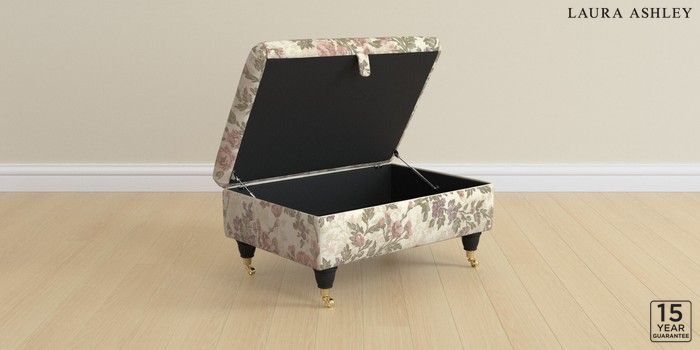 7.3.1 Buy Kingston by Laura Ashley Storage Footstool Ellerby Grape Purple Low Brass Castor - Black from the Seasons online shop Click here to use our website with more accessibility support, for example screen readers
