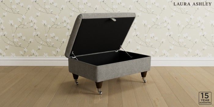 7.3.1 Buy Kingston by Laura Ashley Storage Footstool Orla Pale Steel Grey Low Chrome Castor - Chestnut from the Seasons online shop Click here to use our website with more accessibility support, for example screen readers