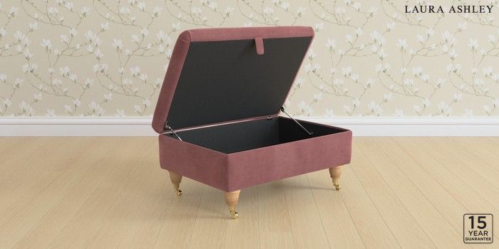 7.3.1 Buy Kingston by Laura Ashley Storage Footstool Peyton Plum Purple Low Brass Castor - Light Oak from the Seasons online shop Click here to use our website with more accessibility support, for example screen readers