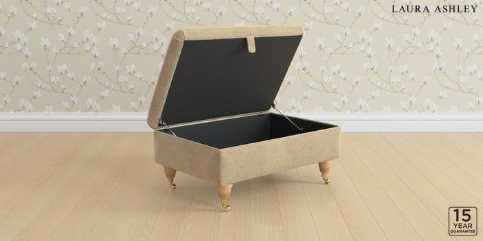 7.3.1 Buy Kingston by Laura Ashley Storage Footstool Peyton Sable Natural Low Brass Castor - Light Oak from the Seasons online shop Click here to use our website with more accessibility support, for example screen readers