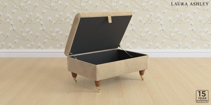 7.3.1 Buy Kingston by Laura Ashley Storage Footstool Peyton Sable Natural Low Brass Castor - Teak from the Seasons online shop Click here to use our website with more accessibility support, for example screen readers