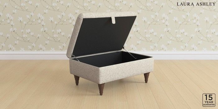 7.3.1 Buy Kingston by Laura Ashley Storage Footstool Tichwell Stone Natural Low Turned - Chestnut from the Seasons online shop Click here to use our website with more accessibility support, for example screen readers