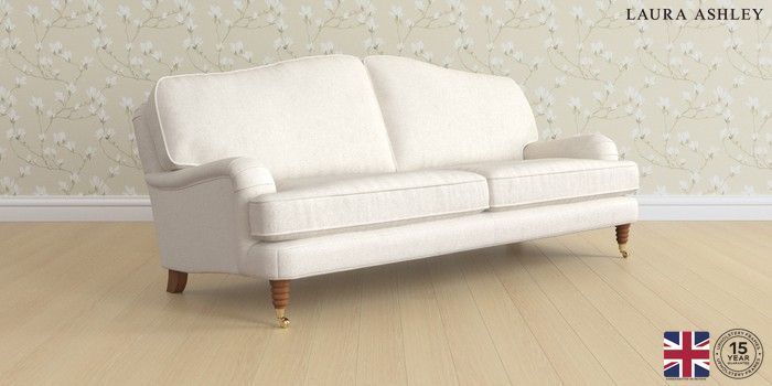 7.3.1 Buy Lynden by Laura Ashley 4 Seater Sofa Anneliese Oyster Natural Ornate Brass Castor - Teak from the Seasons online shop