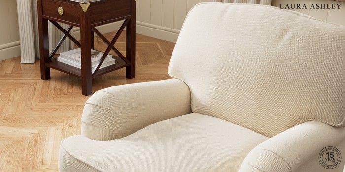 Subtle yet supreme, Edwin from Laura Ashley adds a touch of charm to your sofa. With a soft herringbone pattern, this elegant fabric is designed to bring an inviting and indulgent feel to your space.