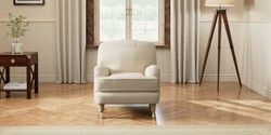 7.3.1 Buy Lynden by Laura Ashley Armchair Anneliese Oyster Natural Ornate Chrome Castor - Light Oak from the Seasons online shop