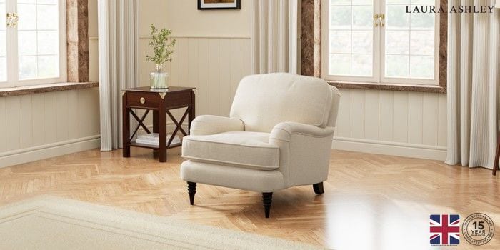 7.3.1 Buy Lynden by Laura Ashley Armchair Anneliese Oyster Natural Ornate Turned - Black from the Seasons online shop